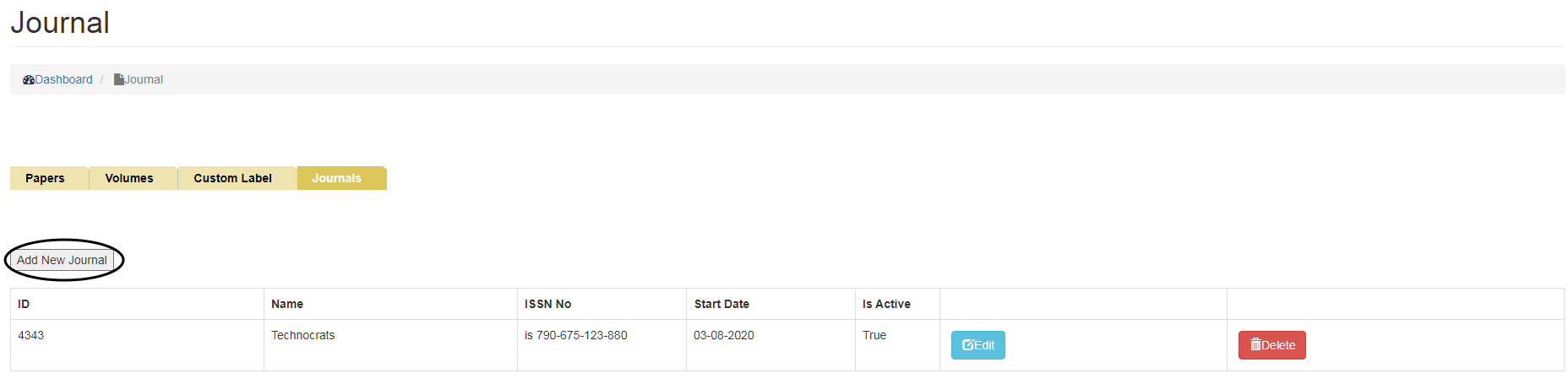 •   To Delete Journal, click on the Delete button.